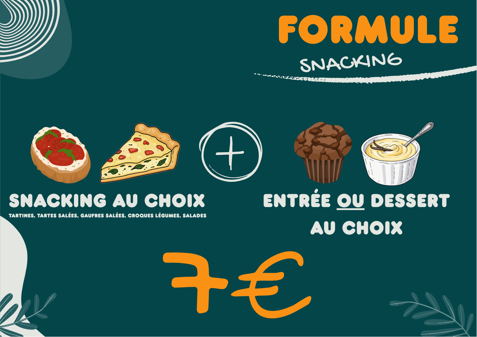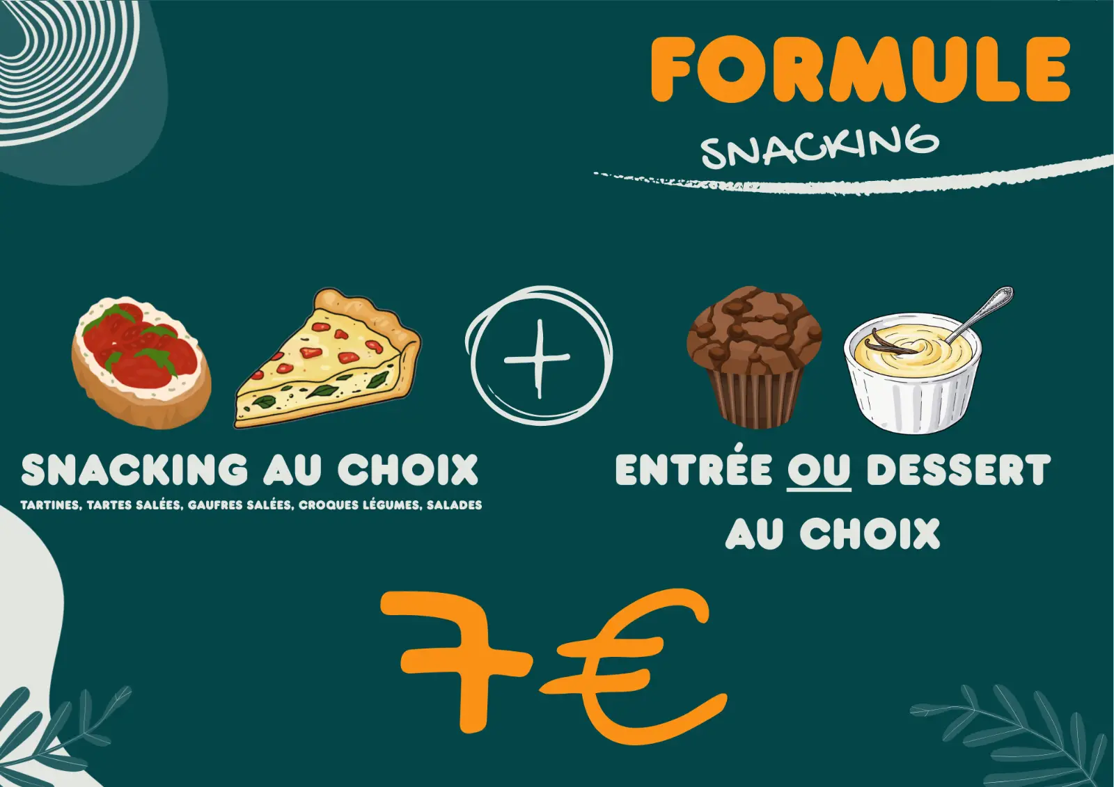 • Une formule Snacking avec entrée ou dessert à 7€